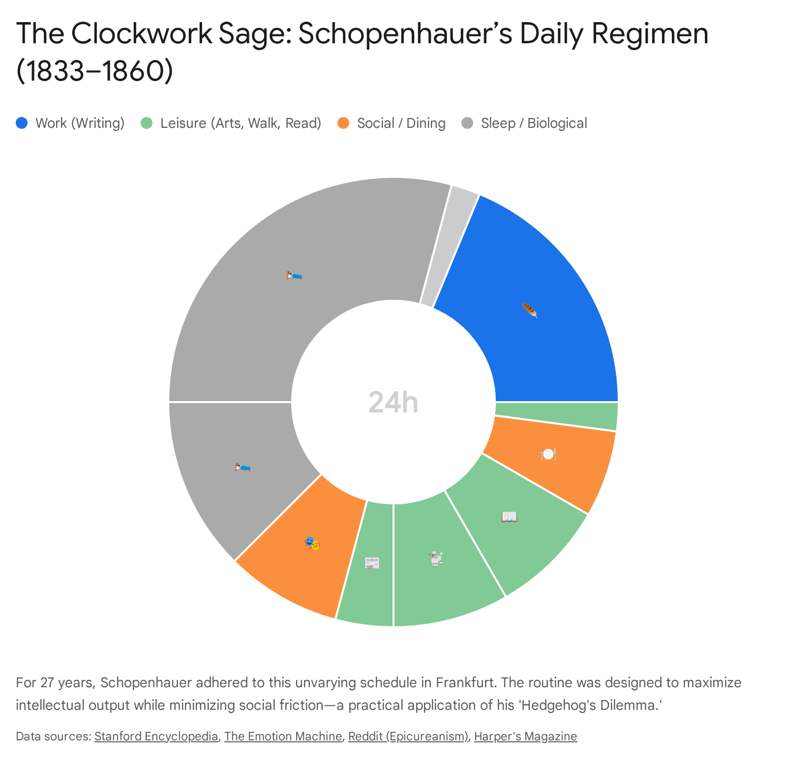 - Morning (7:00 AM - 12:00 PM): He woke, took a cold sponge bath, and drank strong coffee. He then wrote and studied for exactly four hours. He strictly forbade interruptions during this time.