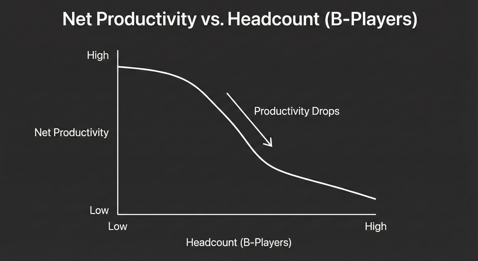 Why? Because the 10 A-Players now have to spend 30% of their time correcting the B-Players' code, explaining simple concepts, and fixing bugs. The "Net Output" decreases because the Coordination Cost explodes.