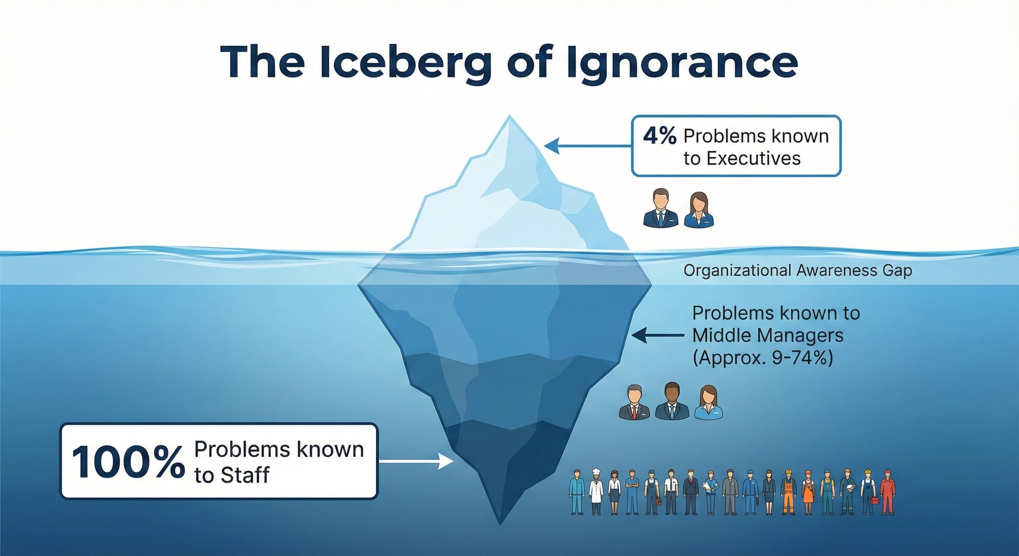 If you rely solely on your direct reports (Middle Management) for truth, you are operating with a 91% blind spot.